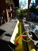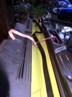 | 次は、忘れてたフロントウィンドー下側のパッキンの取付して、車内側のフロントウィンドー固定レバー取付 |