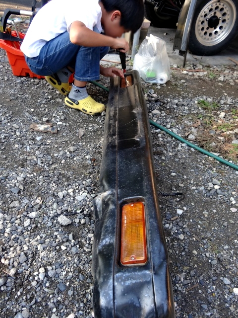 壊れてて、コーキングで固定してあった って事で、今度は5号のフロントバンパーからウィンカーを外す。