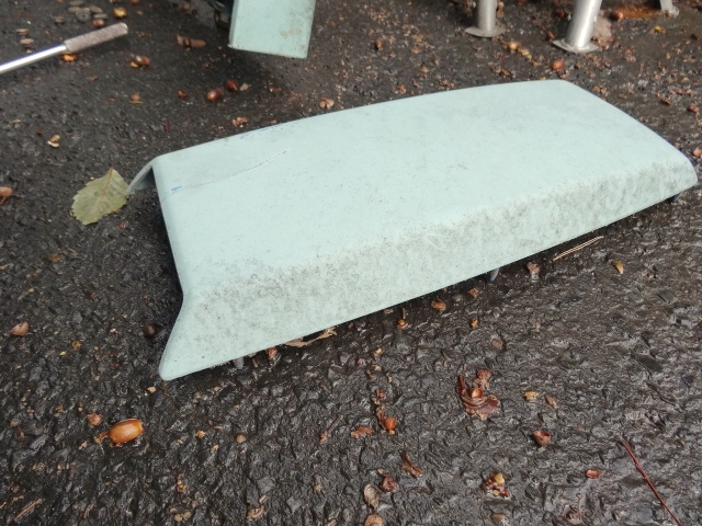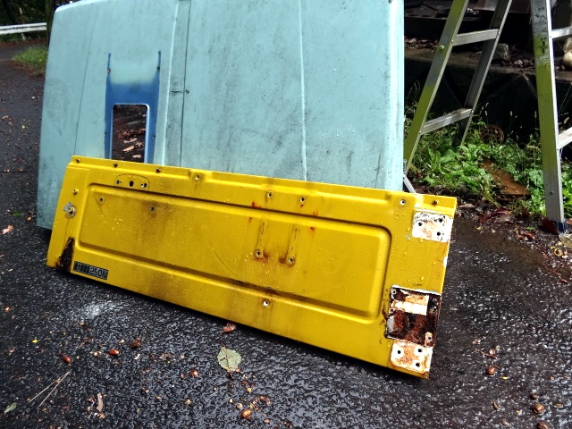 10/14(土) 本日より残りの大物外装部品に着手。まずはボンネットの検分。