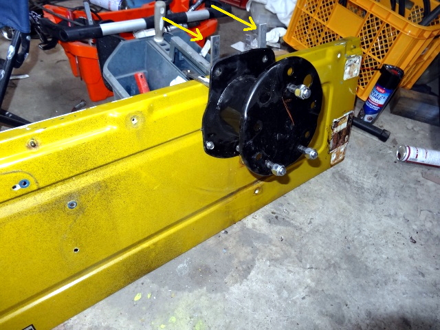 | スペアタイヤのステーを止めにくいので、フレームを少しカット |