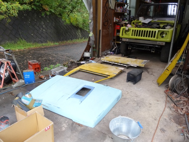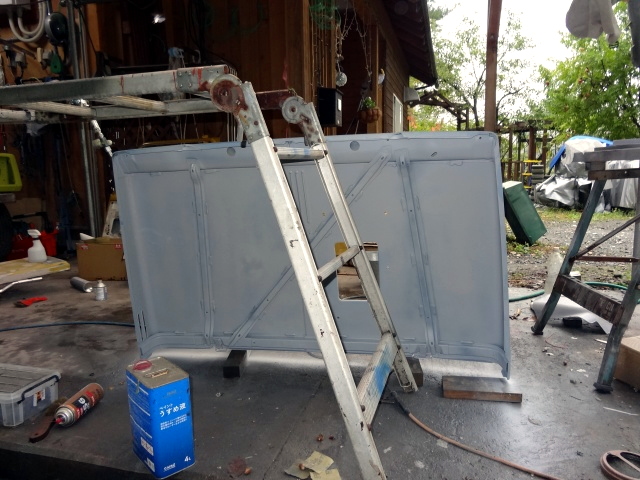 次は、ボンネット等へのサーフェーサー吹きなんだが.....事故発生