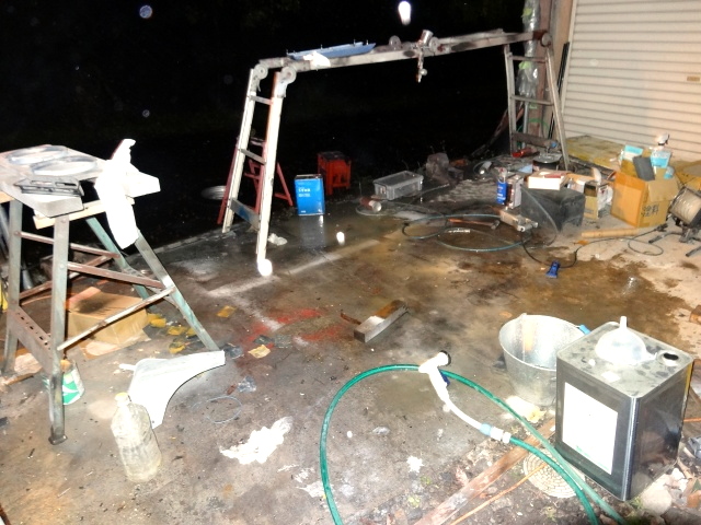 ボンネットを立て掛けてた脚立が転倒し、上に載ってたエアスクープが破損 |