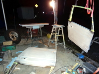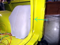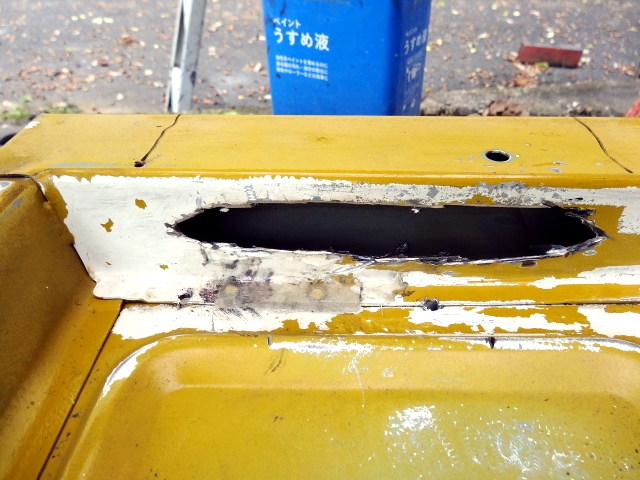 リヤゲート右側の裏で、LEDテールのナット止めたり結線しないといけないので、手の入る穴をグラインダーで開けた。 |