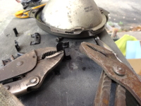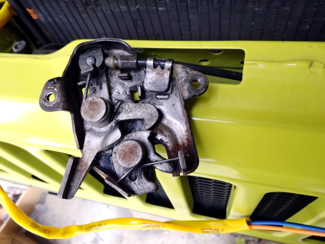 次は、ボンネットキャッチの取付。実は、分解時の画像を確認しないで適当に付けた結果......後日大変な事に |