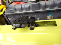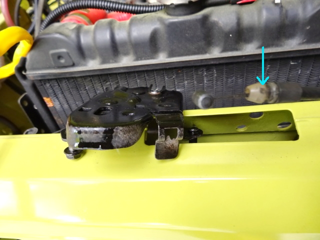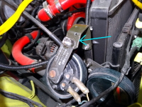 1つは、ラジエターのステーに直付け。もう一つは、L字アングルを加工して取付。 |