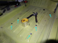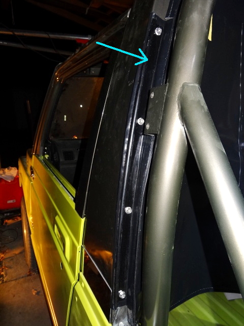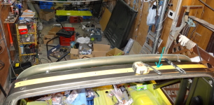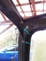 | 次は、センターピラー天部にマーキングしてから、リアカーテンの取付。 |