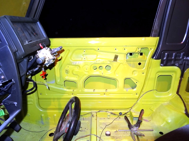 運転席側は、後日、通し忘れたルームランプ配線を通してから。 |