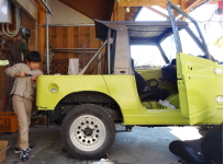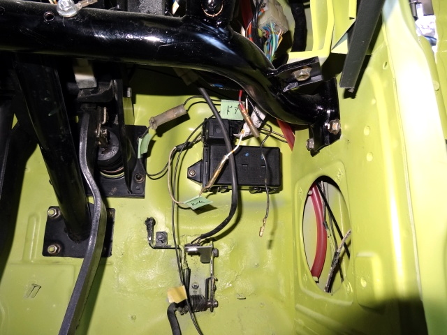 | そろそろ運転席を取り付けたいんだが、付けちゃうと作業しにくくなる、アンテナ・、シートベルトの巻き取りユニット・ミッションのシフトレバー等を先に取り付け。 |