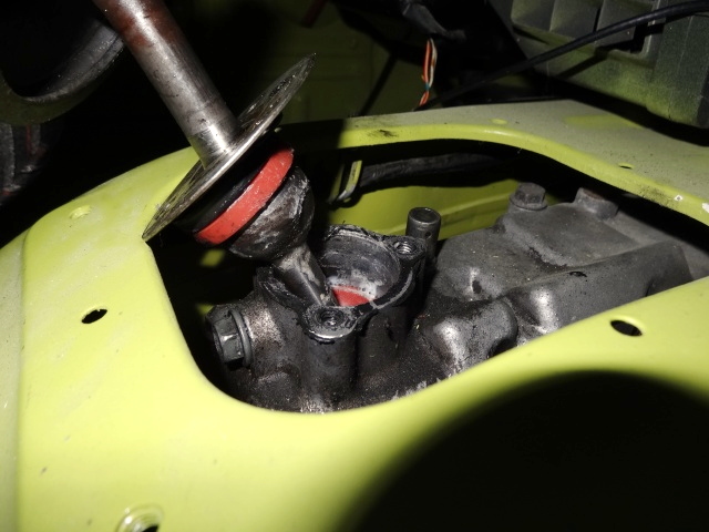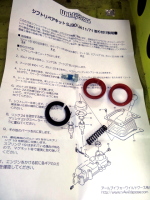 | 次は、ミッションにシフトレバーを取り付け。ブッシュは崩壊までは行ってなかったけど傷んでいたのでシフトリペアキットでリニューアルアル、 |