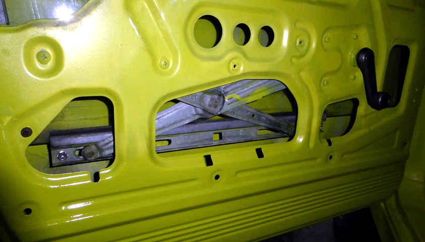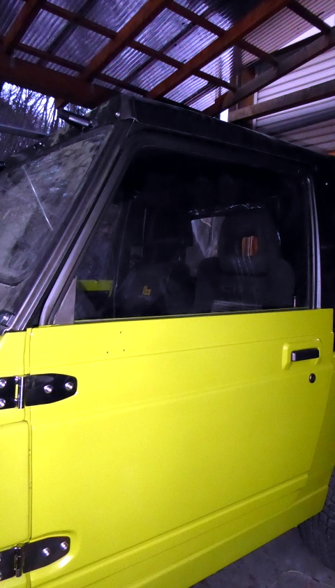 次は、やっとドアの内張りの取付。SMZのレザー仕様を奢った