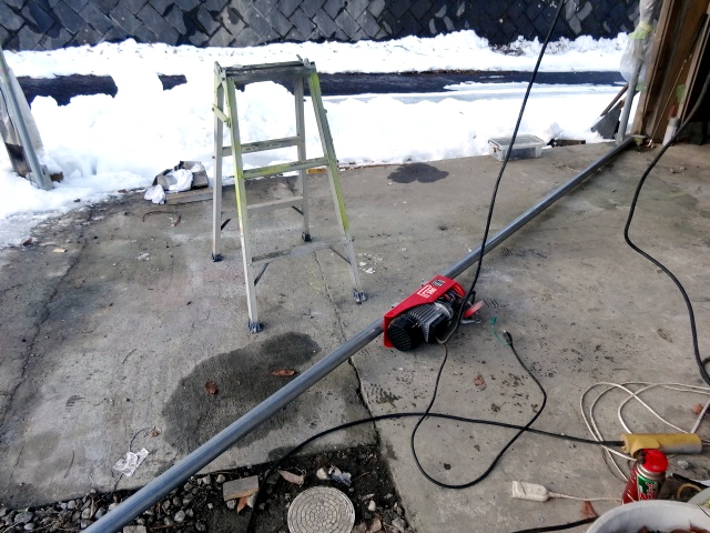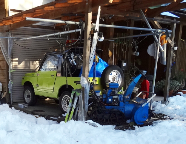 | 1/7 除雪機を置くのに不便なので、お役御免となった、単管足場の撤去。 |