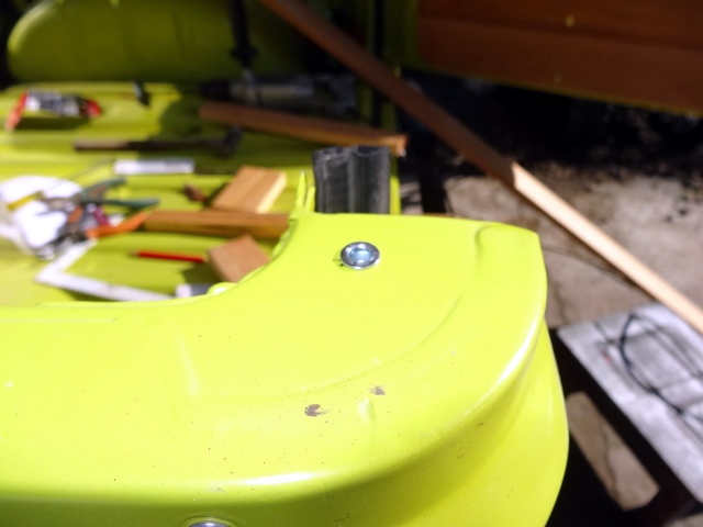| まずは、気になっていた、ボディの穴にナッターでネジ穴付けて飾りボルトで埋める処理 |