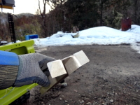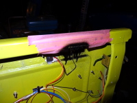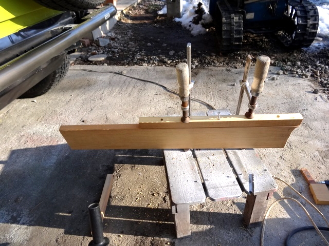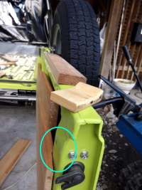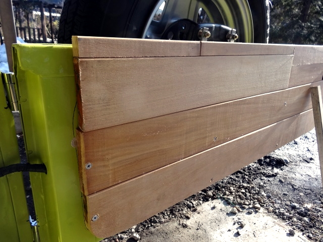 端材も使って、リヤゲート上端より1cmほど上まで板を出す仕様で、板を切り出し仮組み。 |