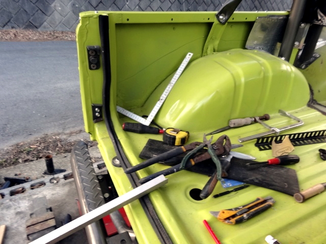 右側は、燃料パイプのカバーがあるため、右側より使用部材が少なくて、端材の調整が効きそうなので、