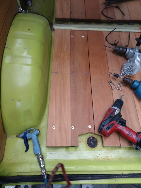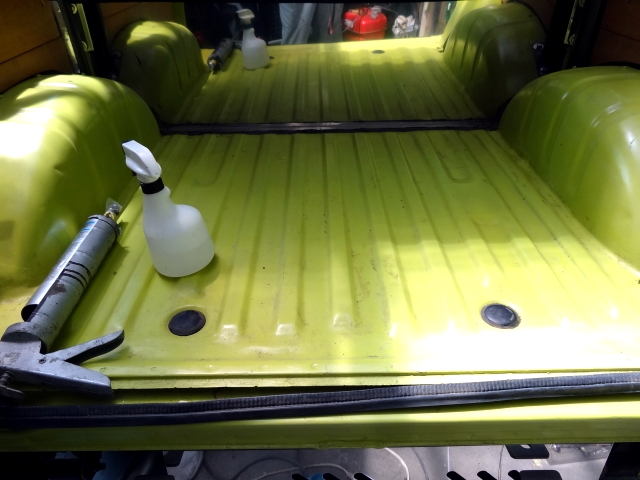 荷台は露天なので水抜き穴が必要。純正の大きい穴は、下に部材があって、そこが錆びてしまいそうなので、