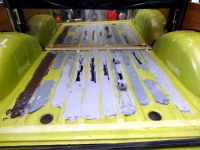 板で隠れる波の凹んだ部分にゴミが溜まって錆びるはずなので、コーキングで埋めてしまうことにした。 |