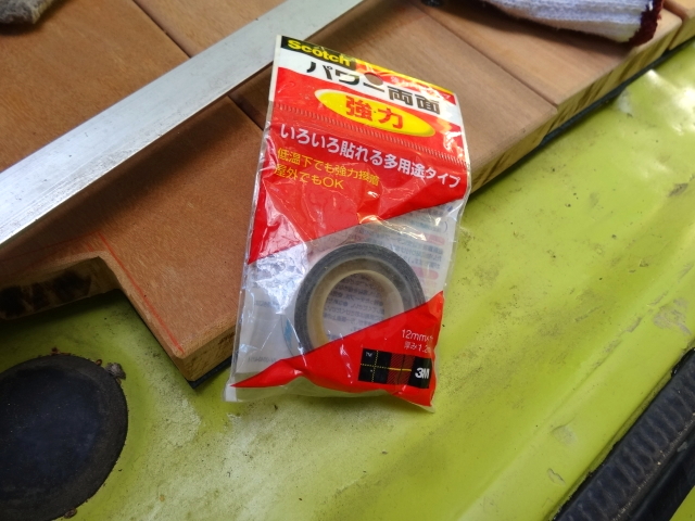 ここは、結構なパテ盛りしてるので、ビス留めは危険(笑)。両面テープだけで固定する。 |