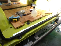 | 次は、左右のドアの窓外側の雨よけ?のカバーを新品に交換 |