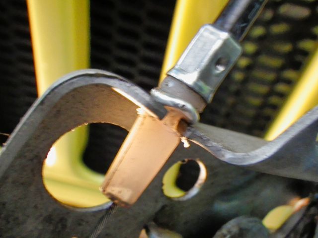 で、ワイヤーのボンネットキャッチ側を加工して、作動長を2mmほど詰めた