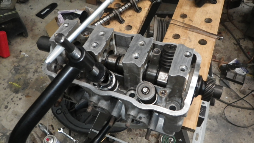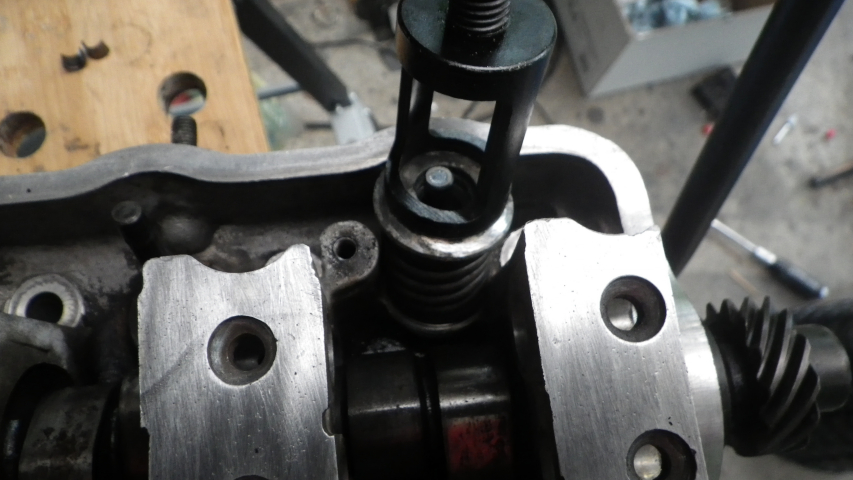 バルブスプリングを押さえてるストッパー?が収まっていなくて押さえてるだけなので、ぐらぐらする