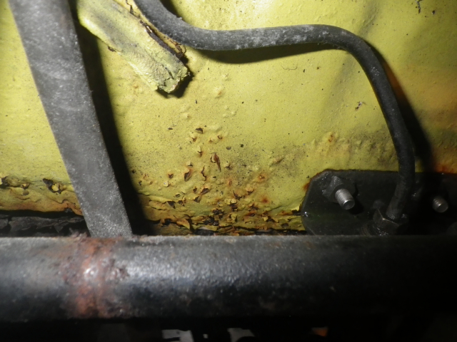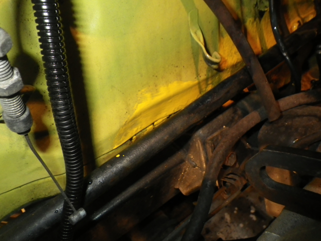 ブレーキシリンダーの下の方にあたるので、ブレーキオイルが飛んでる??