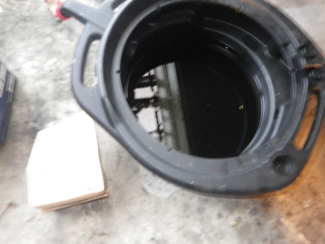 【16:29】抜いたオイルは、500ccの処理袋で足りてしまった |