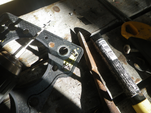 メタル入ってるので、ポンチでは抜けず、ドリルで |