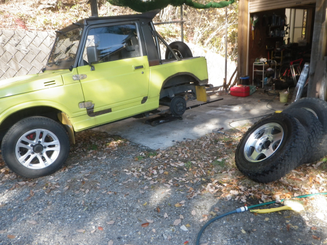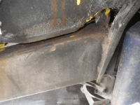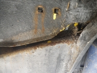 | 先日塗装した、エンジンルーム右側下方の下側も腐食してたので、さび落としして塗装 |