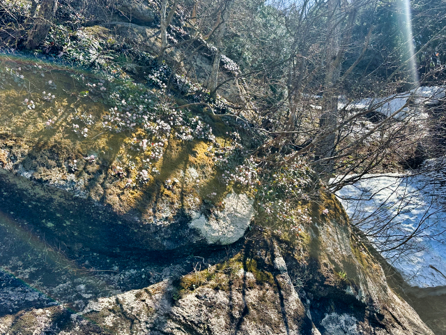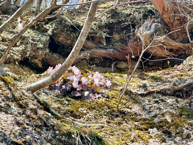 いつもより、開花直前の姿に愛おしさを感じる美しい藤原の桜。イワウチワも満開。