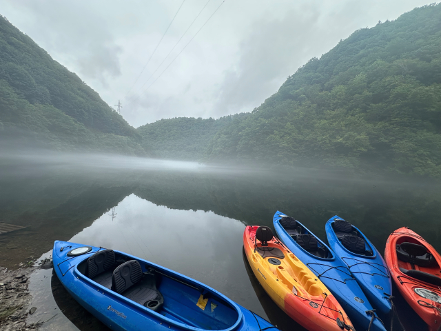 2025/8/14 ママは、カヌーのガイドで洞元湖へ