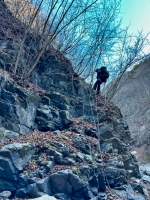 道路から見える場所にあるけど、取り付きまでは、懸垂→渡渉→急斜面登山。