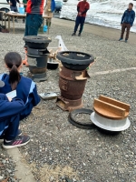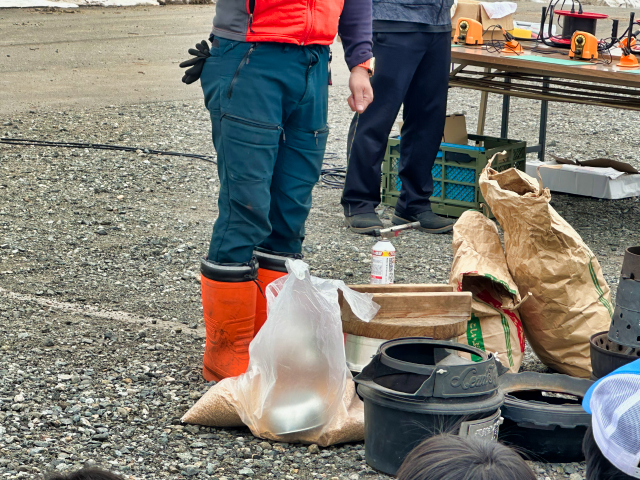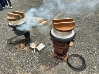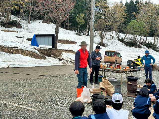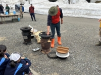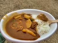 お昼は、昔からこの地域で使われてきた、もみ殻を燃料にした「ぬか釜」で炊いた、魚沼産コシヒカリのカレ~。
