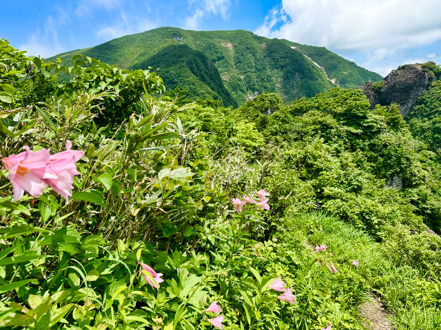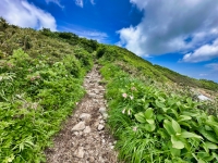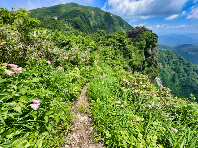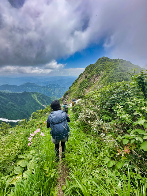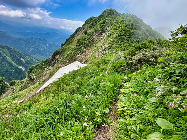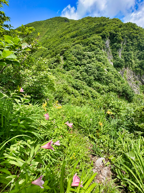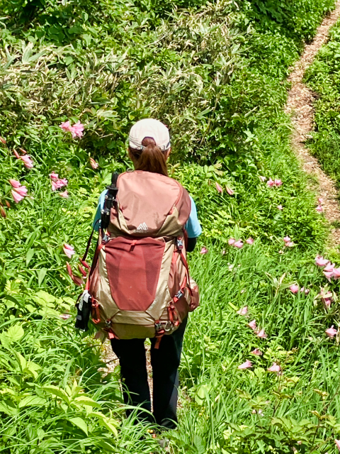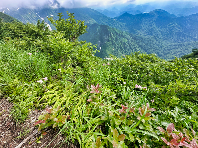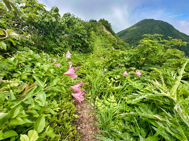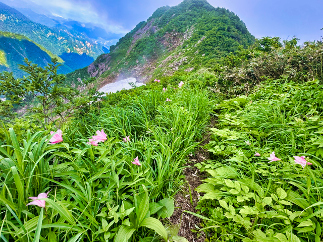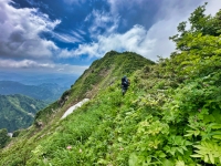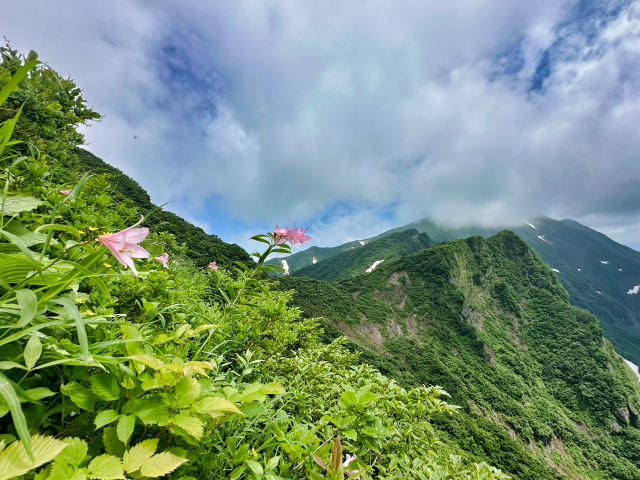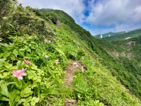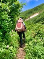 | 2025/6/28 ママは浅草岳へ 「昨日は皆さんと新潟と福島県境の山で花の百名山 浅草岳へ。 ルートは、頑張った人だけが見られるヒメサユリロード、六十里尾根。 アップタウンのやせ尾根が続く、まるで谷川岳主脈のようなタフなルートですが、皆さん、暑い中、お花と絶壁を見ながら頑張っていました。 それにしてもこのルートは、ヒメサユリ越しに見る残雪の浅草岳や眼下の田子倉湖が本当に綺麗。 他のルートから登ってきた登山客が、思ったよりヒメサユリ無かったねと。是非、このルートをオススメしたい!」 |