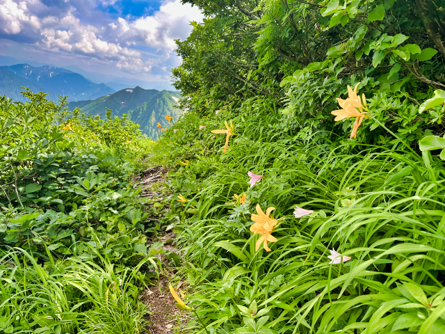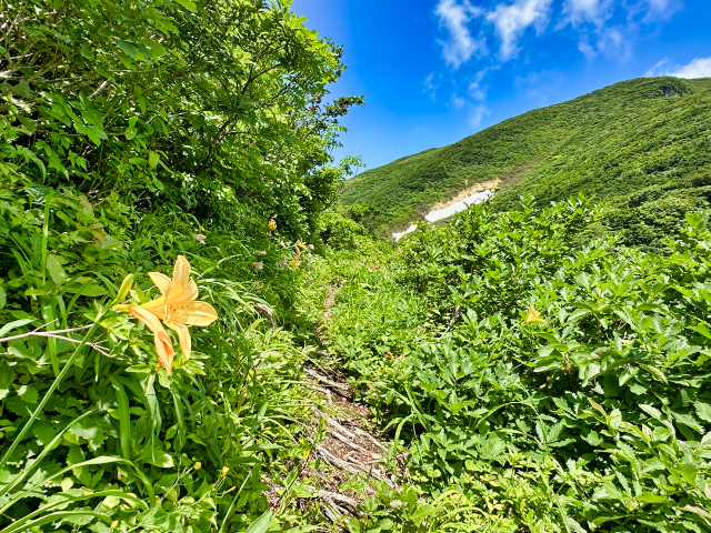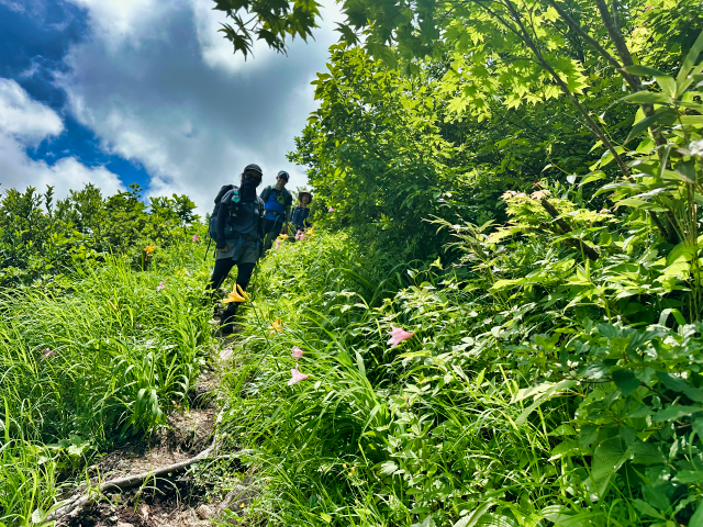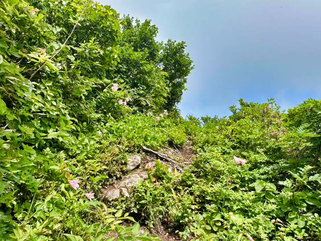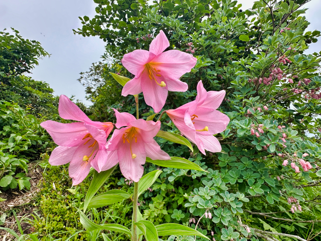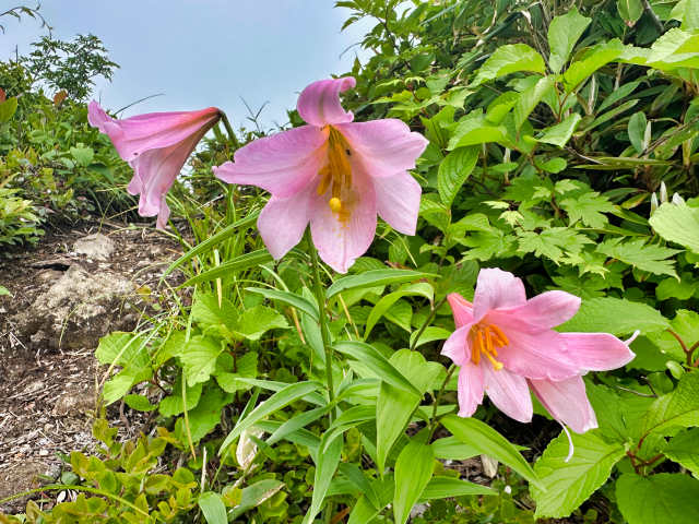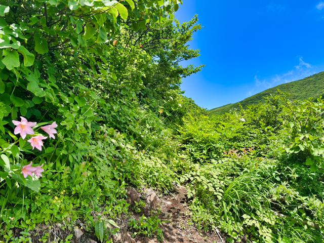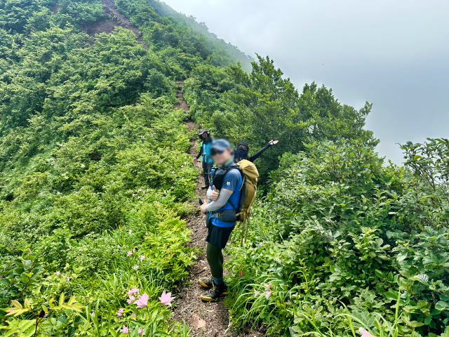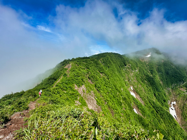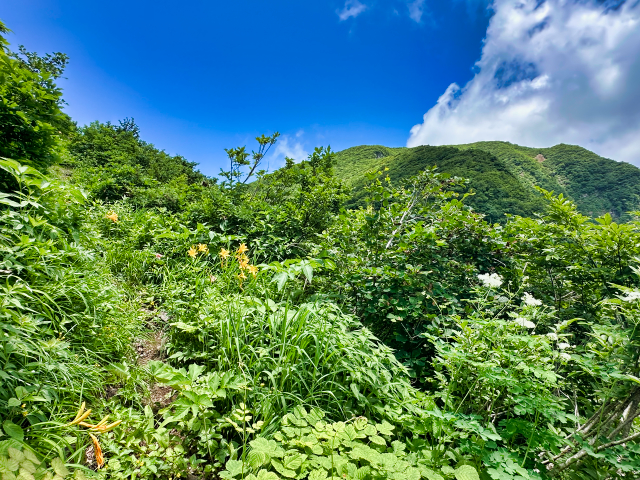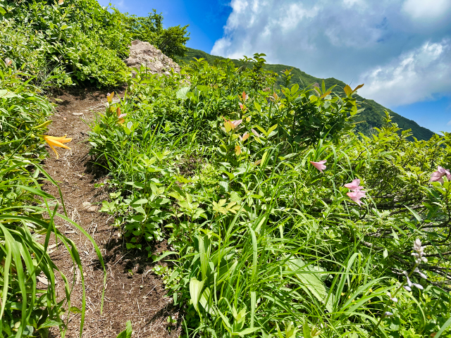 | 2025/6/28 ママは浅草岳へ 「昨日は皆さんと新潟と福島県境の山で花の百名山 浅草岳へ。 ルートは、頑張った人だけが見られるヒメサユリロード、六十里尾根。 アップタウンのやせ尾根が続く、まるで谷川岳主脈のようなタフなルートですが、皆さん、暑い中、お花と絶壁を見ながら頑張っていました。 それにしてもこのルートは、ヒメサユリ越しに見る残雪の浅草岳や眼下の田子倉湖が本当に綺麗。 他のルートから登ってきた登山客が、思ったよりヒメサユリ無かったねと。是非、このルートをオススメしたい!」 |