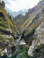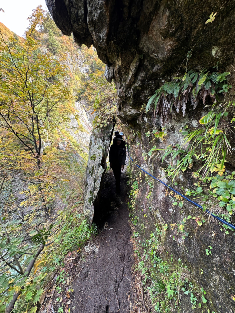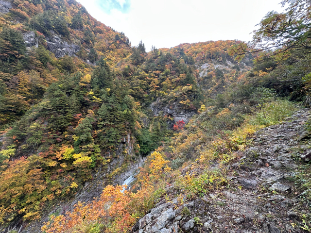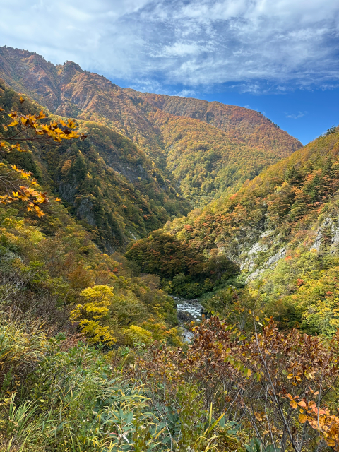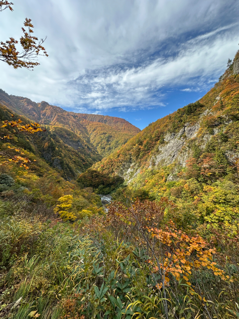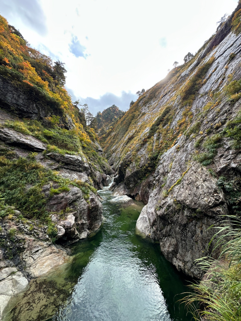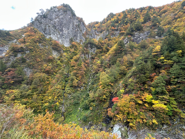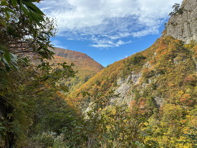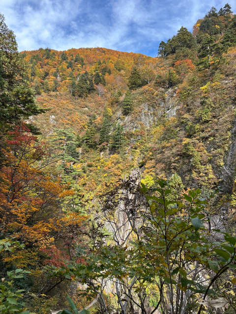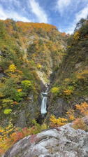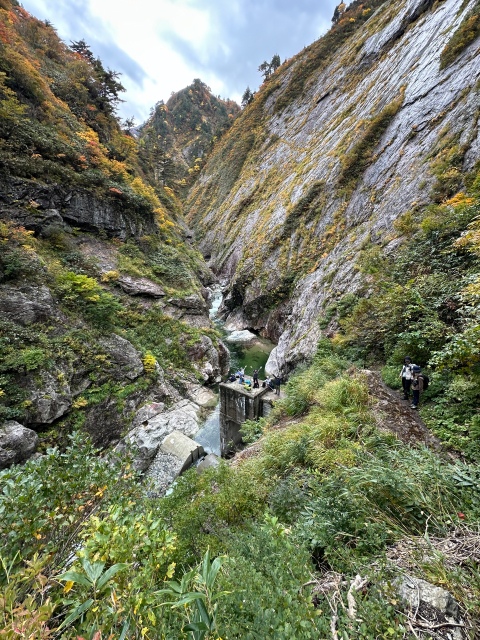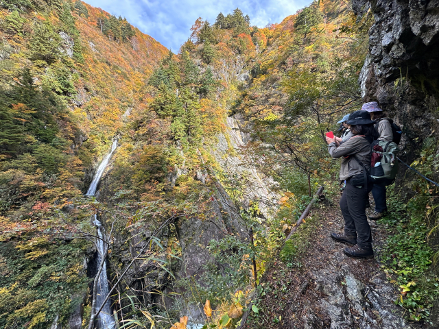| 2025/11/2 ママはガイドで裏巻機山へ。 「今日は皆さんと、越後の下ノ廊下「裏巻機山」に行ってきました。 このルートは、昭和初期に発電所の水源確保の為に完成した断崖絶壁の登山道で、距離が短いながらも、岩壁がくり抜かれた水平歩道や数々の滝、花崗岩を滑らかに流れる五十沢、美しく侵食された巨大ゴルジュなど見どころ盛り沢山。 自然って、すごいと感じられる場所ですが、更に今日は、錦の紅葉に彩られ、それはそれは、圧巻の渓谷美でした。 今回も奇跡的にお客様少なめで、ゆったりと楽しむことが出来ました。」 |
