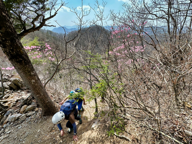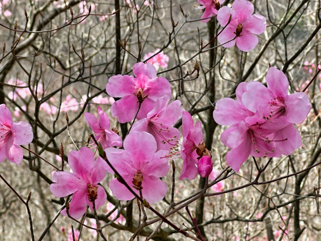 入山した時は、ちょっとしか咲いていていなかったアカヤシオは、1日で一気に満開に〜