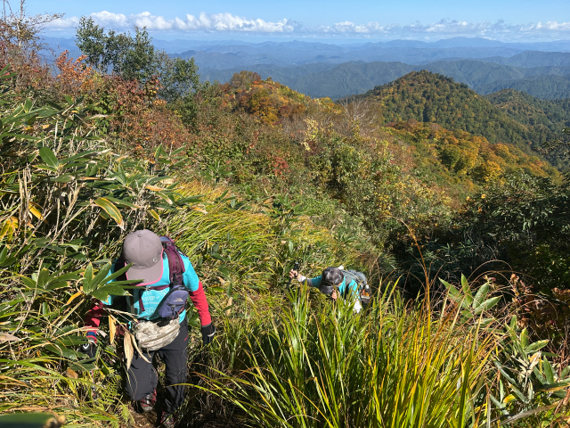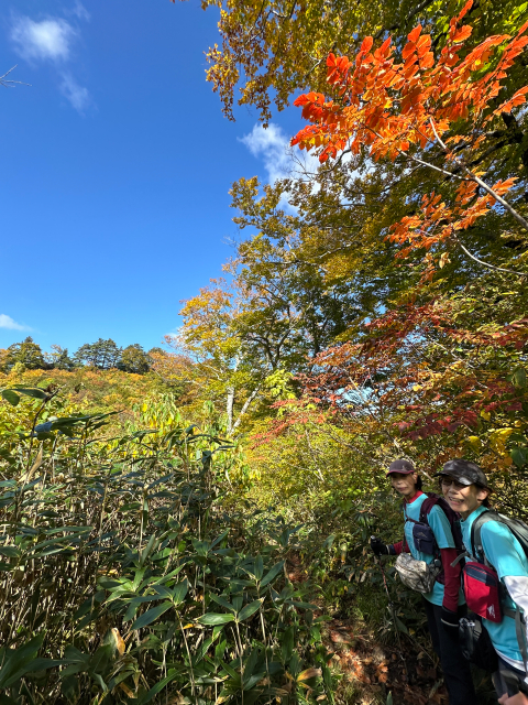 | 2025/10/17ママは、会津朝日岳へ 「福島県只見町の会津朝日岳へ。 会津朝日岳と言えば、渡渉、岩場、急登が連続する、登りごたえのある山で、辛い登りを越えた先には、東北の山々を一望できる大展望の山だけど、実は、紅葉の名所なのです。 以前から、紅葉の時期にご案内したいと思っていましたが、まさに今日の会津朝日岳は、紅葉の玉手箱??でした(笑) 下山後は、登山口にある”イワナの里”のえみさんと久しぶりにお会いすることができ、近況報告。お元気そうで良かった」 |