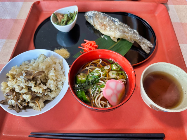 お昼は色々あって、お客様と同じ、山の鼻小屋の豪華な舞茸ご飯。最高〜!(笑)