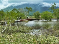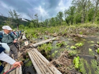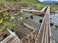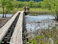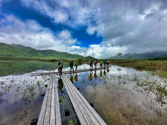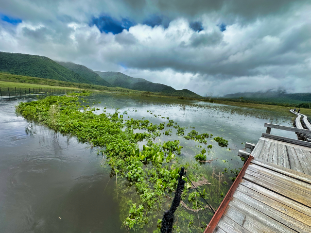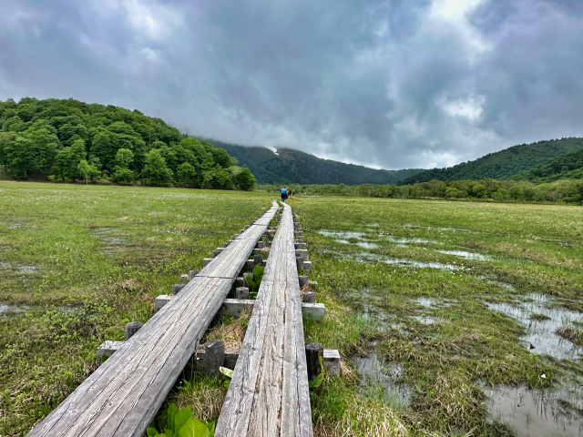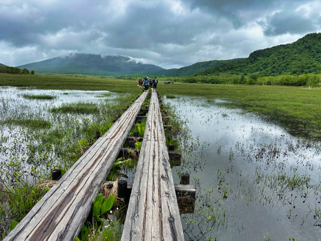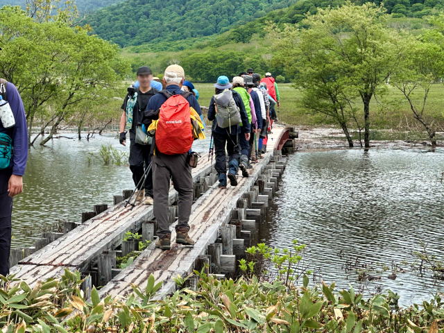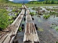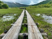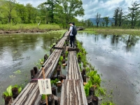 | 2025/6/15 ママはガイドで尾瀬へ。 「今日は勤労者山岳会さんの皆さんと尾瀬ヶ原散策へ。 夜中の豪雨で、木道冠水通行止めの可能性がありましたが、無事に解除され、予想通り、普段見れない特別な尾瀬が待っていました〜。 ただ、下ノ大堀の花芽があがってきたニッコウキスゲやレンゲツツジが冠水したので、影響を受ける可能性があるかも。 そうそう、これからシーズンを迎えるワタスゲ。 今年は、水芭蕉に続き、ワタスゲも当たり年の予感が・・・」 |