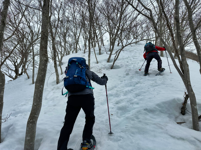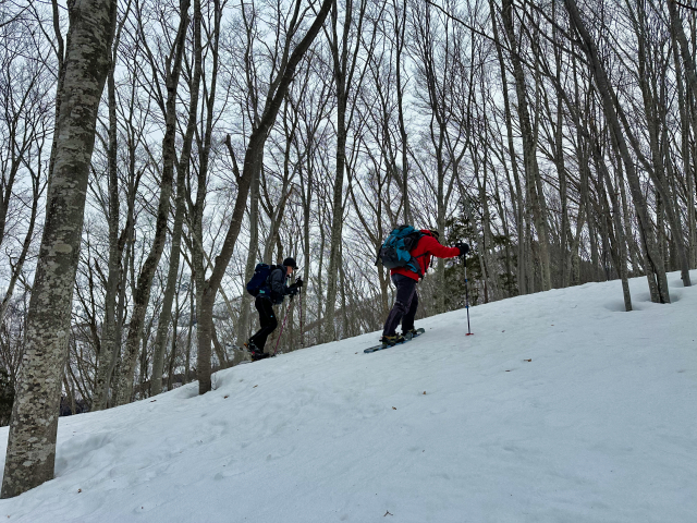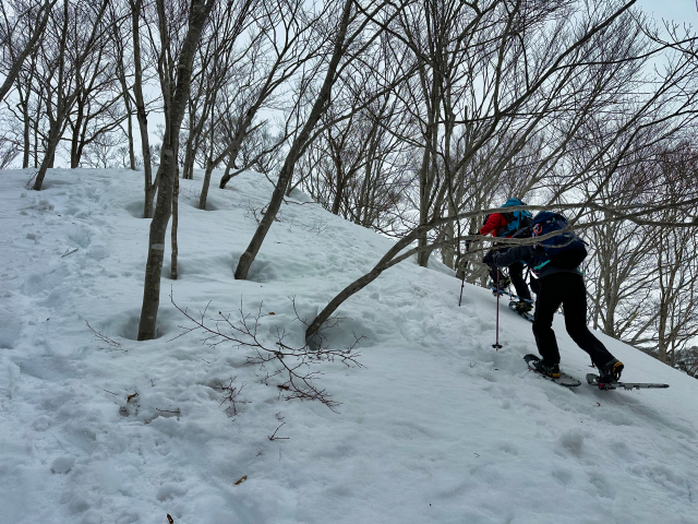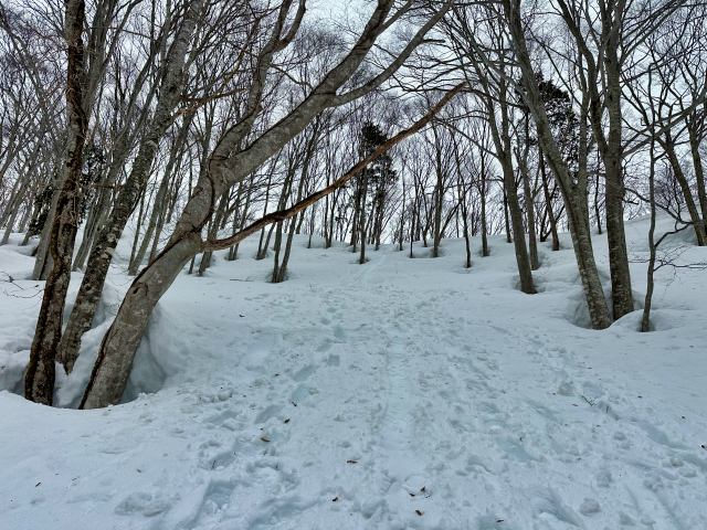 スノーシューコースの下見で入ったけど、タフなコースで面白い。