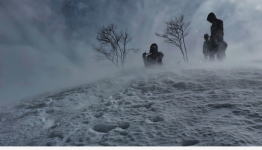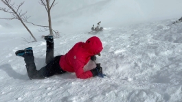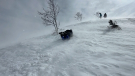 「お天気急変の爆風 谷川岳天神平。予報通り、青空から暴風雪。