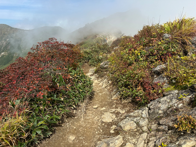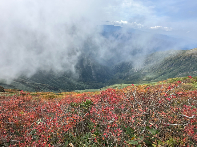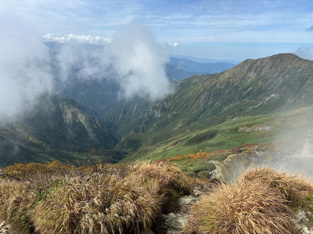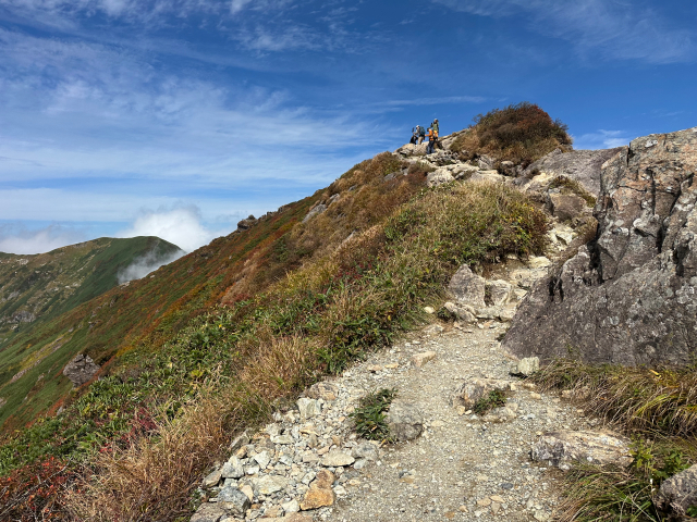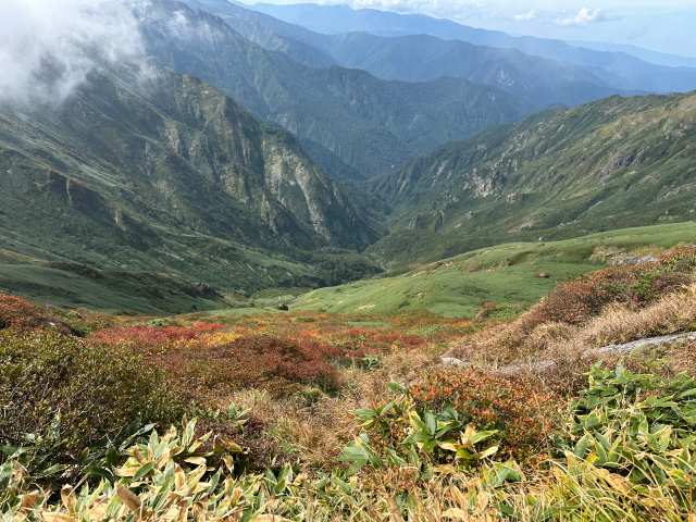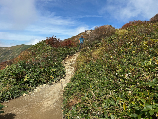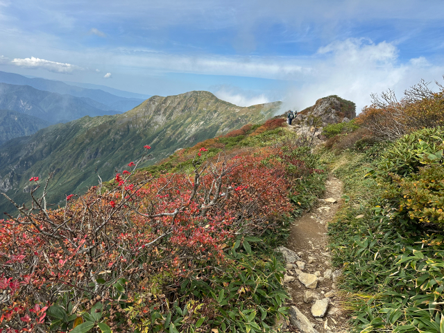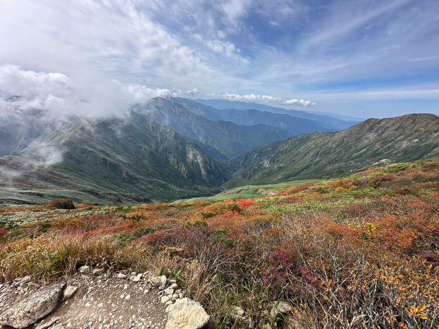 この一週間で錦の絨毯。青空に映える美しい谷川岳でした。