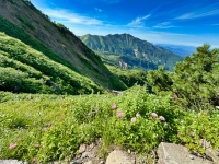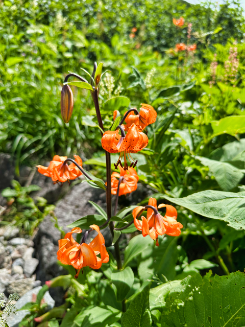 | 2025/7/27〜29 ママは、ガイドで白山へ。 「この3日間は、日本三大霊山の白山へ. 白山と言えばお花。ハクサンや山頂の御前峰にちなむ和名を持つ植物は20種類で、 そのうち、今の時期は、ハクサンフウロ満開。クロユリも群落でした! 室堂に登った日は、愛知の今村白山神社の白山登山講で400個の餅まき奉納が行われ、紅白のお餅を持ってかえってきました(笑)もちろん、重くなるので欲張らず。。(笑) 1300年前から登られている白山。荒々しい山頂部と美しいお花畑や池に、昔の人が極楽浄土と見立てて登ったことがよくわかる、素晴らしい白山でした。 2日続けて、救助ヘリで運ばれる人を見るほど、登り始めの樹林帯の暑さが核心でしたが、無事に下山できて良かったです。大変お疲れ様でした。」 7/28 2日目のの画像。 |