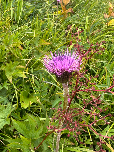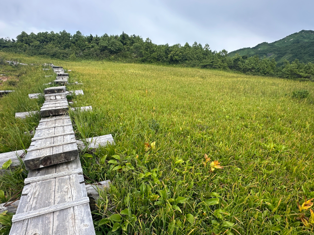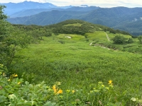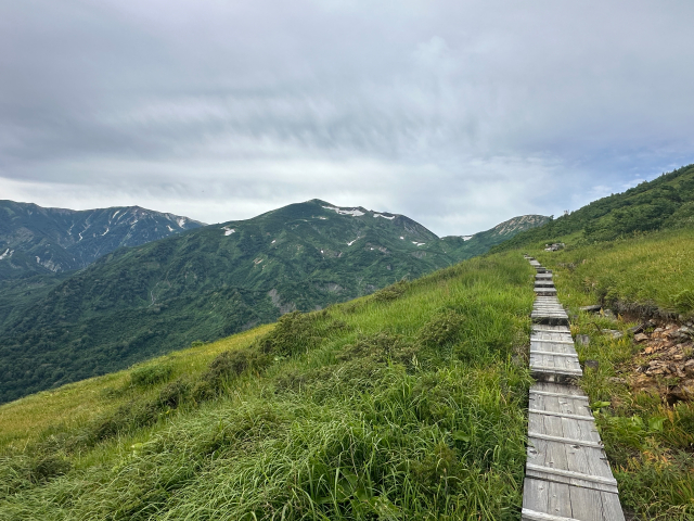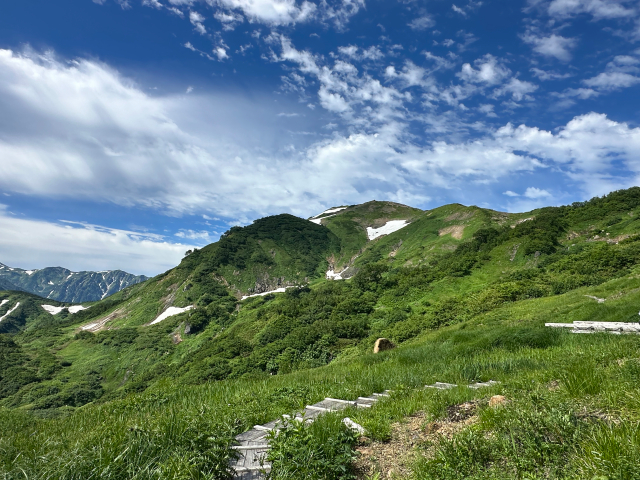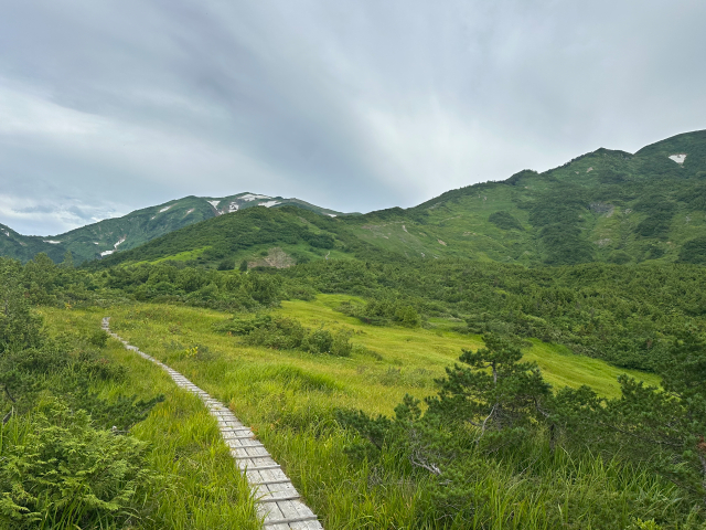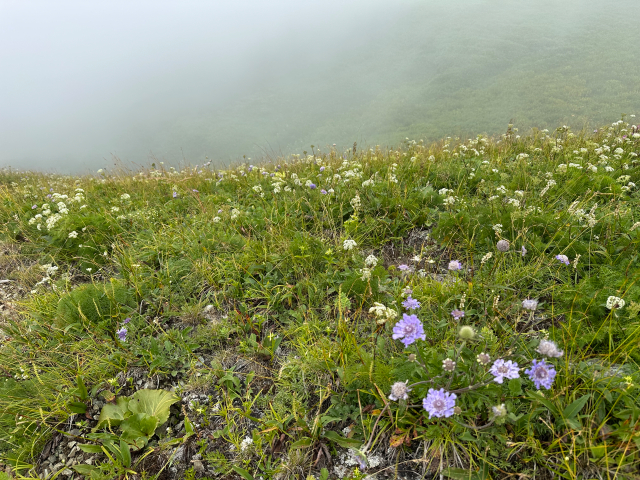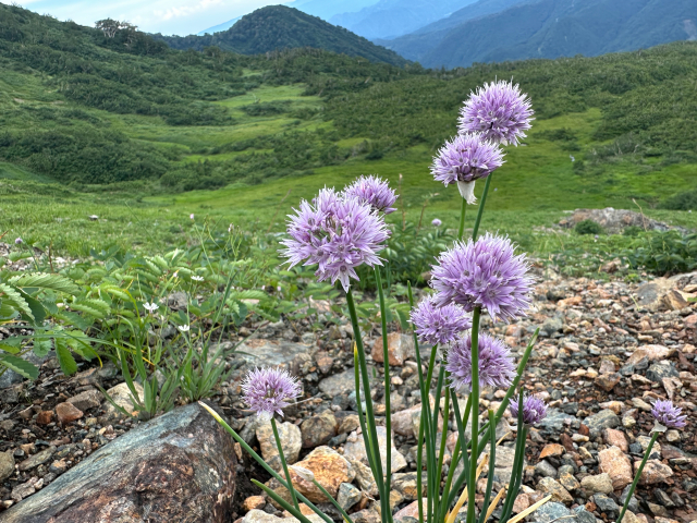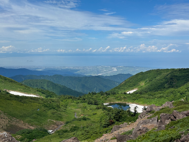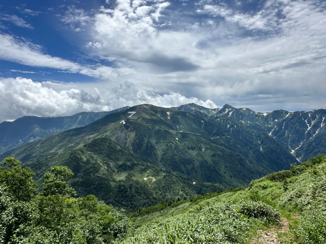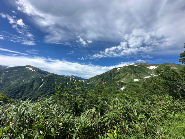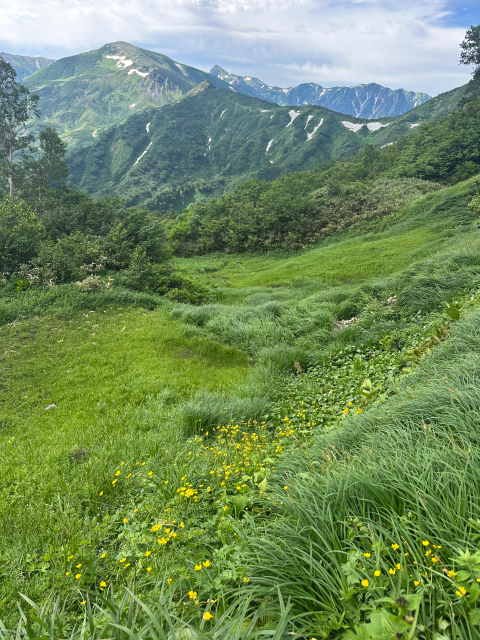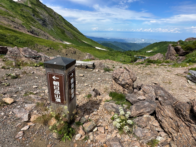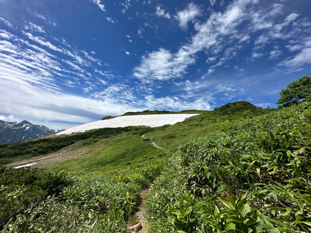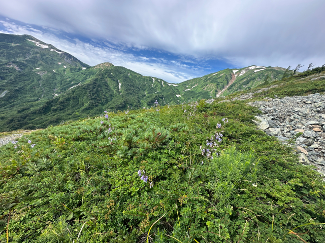 1日24キロ、2日で35キロはけっこう疲れましたが、満開のお花と、朝日岳手前の栂海新道分岐に出た瞬間の、眼下に広がる日本海は、それはそれは美しい光景でした。