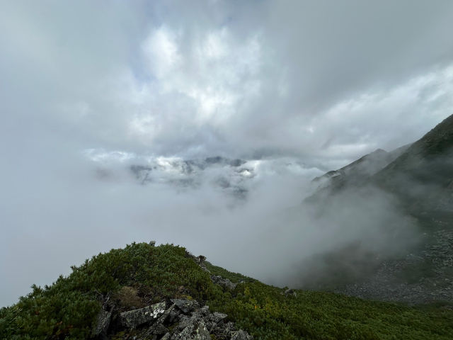 昨日からの雨がやみ、日中はガスったり晴れたり。。たまに見られる絶景にテンション。。(笑)」