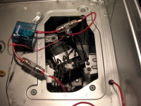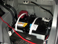 メインバッテリーから大容量線をABSユニットのホールへ渡し、充電キットへ接続する。 |