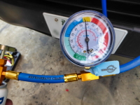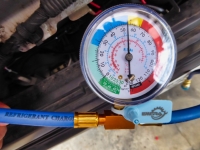 高圧側は調べていないが、とりあえず正規の数値までガスを抜くことにする。 |