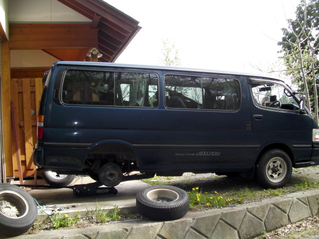 | 12 | 2004/11/ 7 | − | とりあえずハイエースにスタッドレス履かせた。 買ったときについてきた、純正鉄っちんのスタッドレスは リヤは生きてるけど、Fは外スリックなんでキャラバンのお古2本をFへ、 一応山はあるけど、硬化してるかなぁ(^^; |