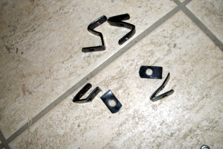 今度のステーは、2倍厚のステンの平板。万力とハンマーで、コの字に加工する。 これで、3倍保つ?(笑)