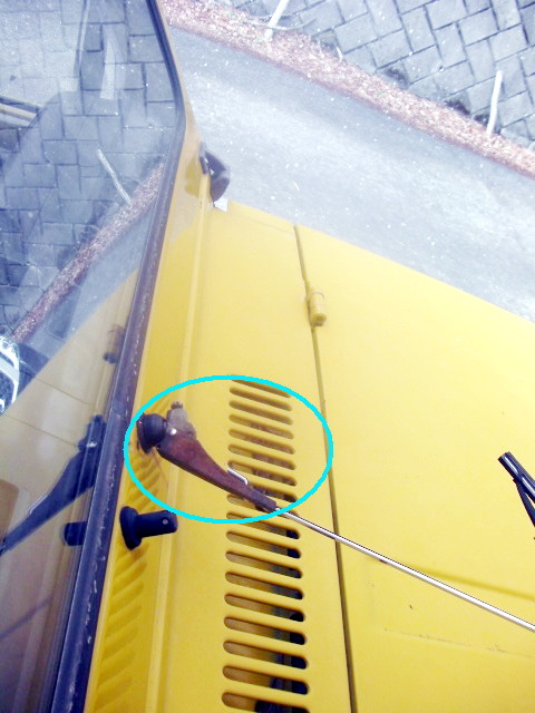 変な角度になってる助手席側のワイパーアームの補修とか。